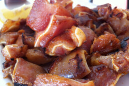 La oreja de cerdo puede tomarse simplemente cocida, ‘á feira’, con morro o como parte del cocido gallego.
