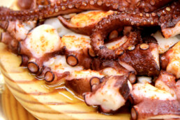 • Pulpo ‘á feira’. Restaurante Os Monaguillos, Pulpería Rial, Os Carrisos Tasca Típica y pulperías del mercado dominical. Padrón.